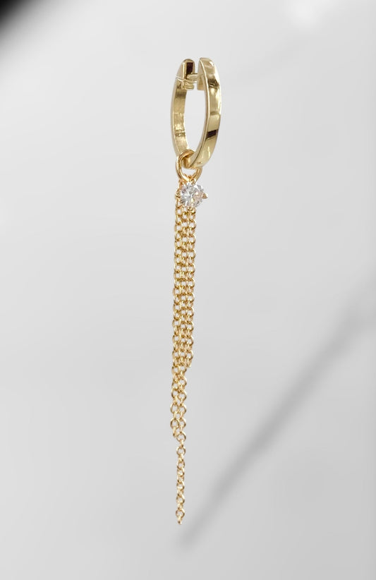 14k Solid Gold Diamond Drop Earring with Dangle Chains – 0.1ct Natural Diamond