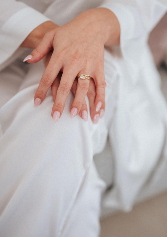 14K Solid Gold Double Band Wavy Ring with 0.9ct Lab-Grown Pear Diamond