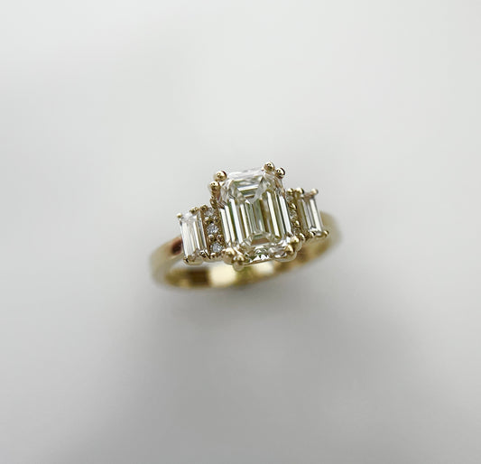 Emerald Cut Lab Diamond Ring in 14K Solid Gold – Vintage-Inspired Engagement Ring