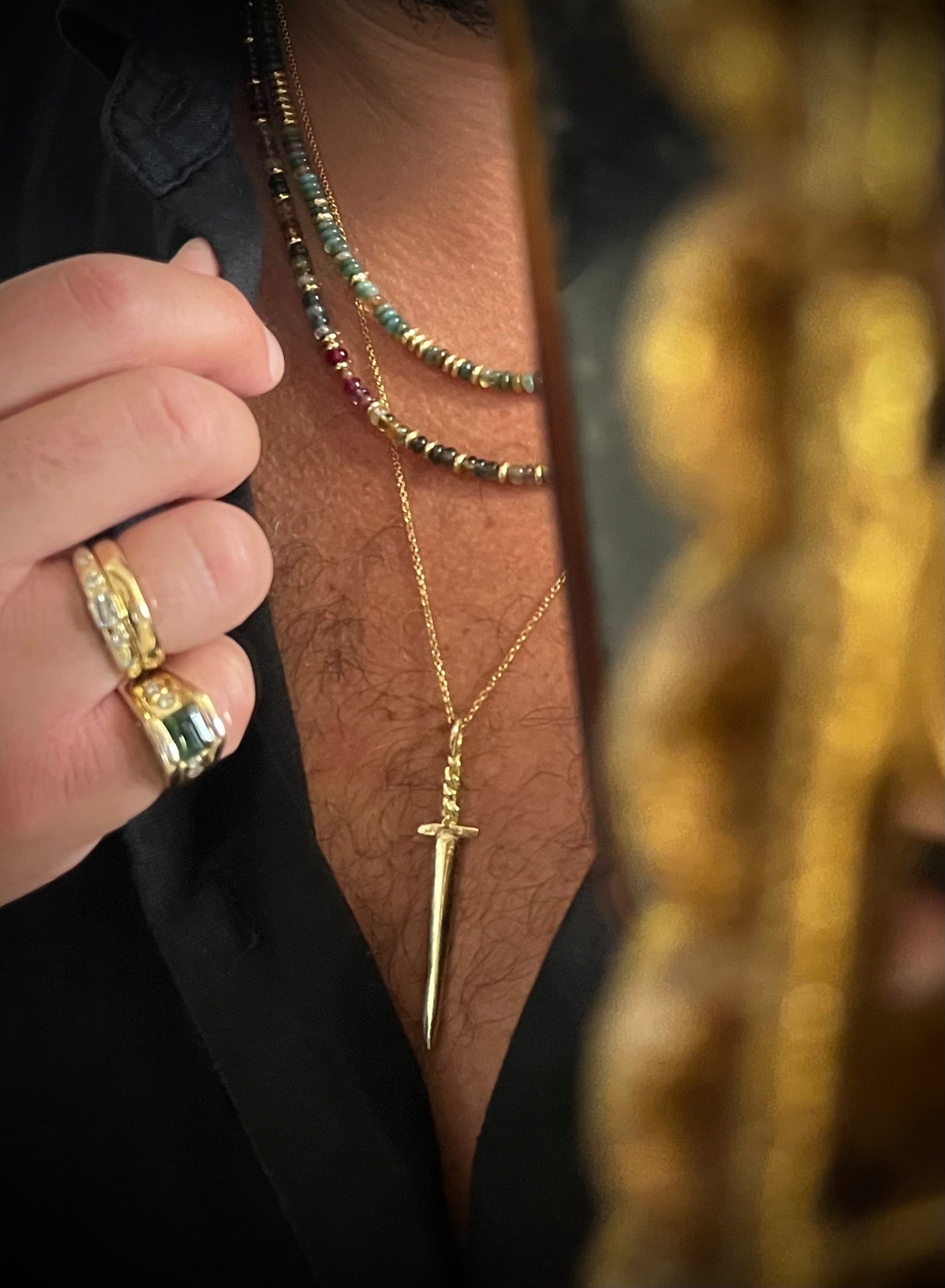Both threaded with 14k solid gold, both made to glow against bare skin.