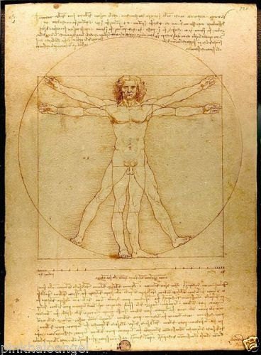 According to Wikipedia: "The drawing is based on the correlations of ideal human proportions with geometry described by the ancient Roman architect Vitruvius in Book III of his treatise De Architectura. Vitruvius described the human figure as being the principal source of proportion among the Classical orders of architecture. Other artists had attempted to depict the concept, with less success."